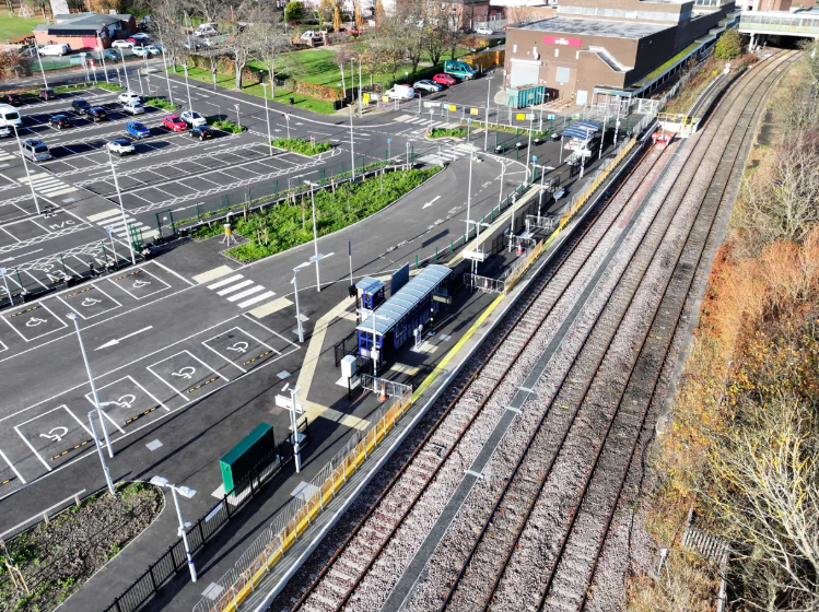 - We have constructed a single platform on the west side of the line, situated alongside an existing car park. The car park has been expanded and features restricted people mobility spaces and Electric Vehicle (EV) charging bays.