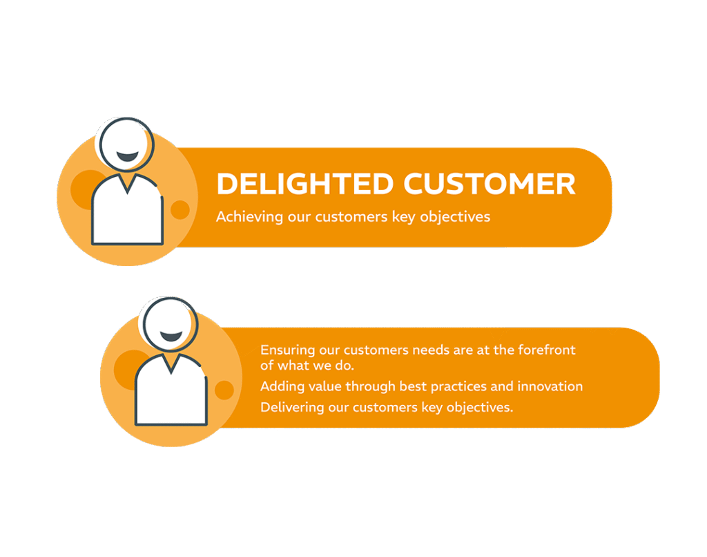 Perfect Delivery is focused on providing our customers with an exceptional experience. To support this, we have two customer commitments; Delighted Customer and Recommended.