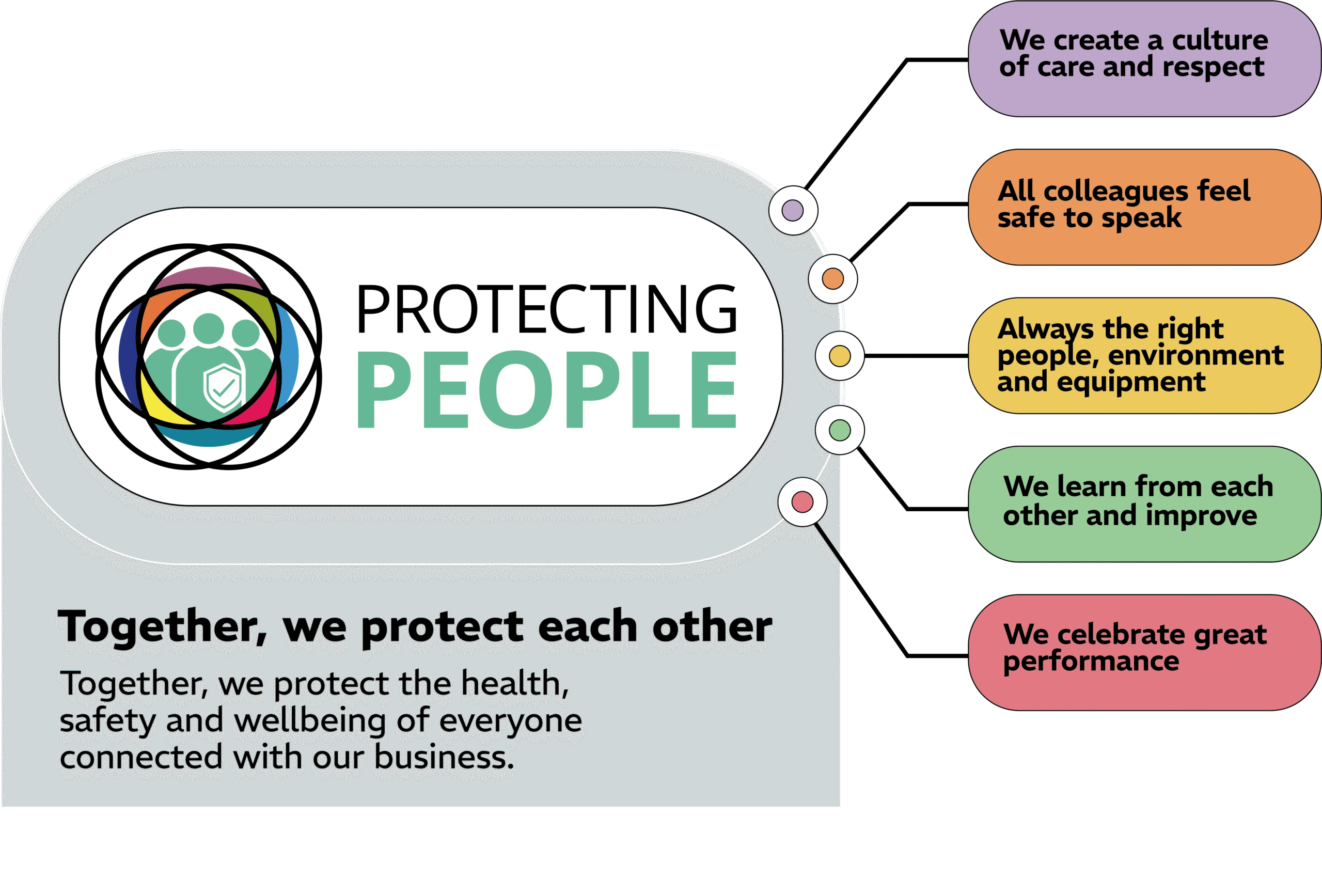 Protecting People is one of our Total Commitments where, together, we protect the health, safety and wellbeing of everyone connected to our business. It means that we support, encourage and nurture behaviours that make us all ambassadors for each other’s health, safety and wellbeing.